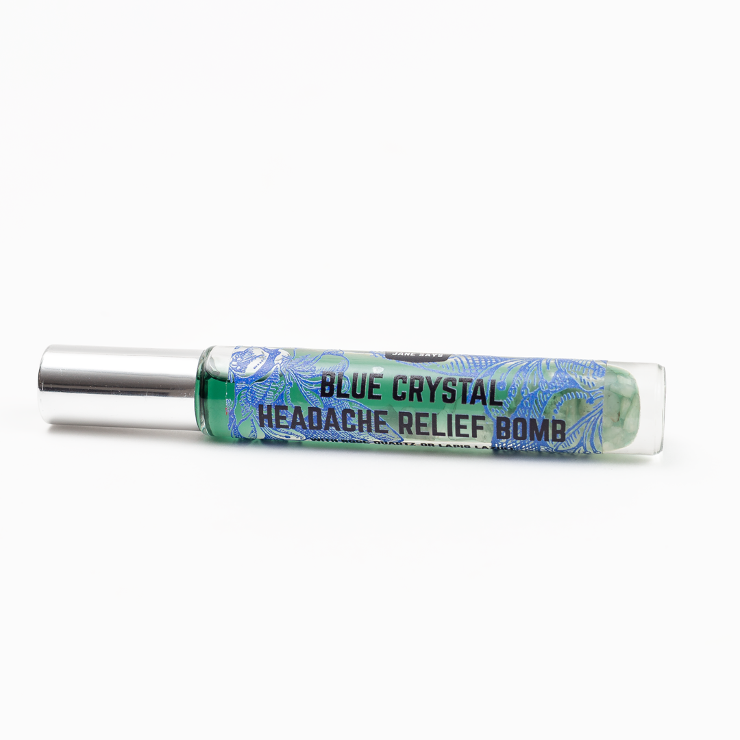 Crystals are also inside to bottle to infuse their healing power into the headache blend. $24
